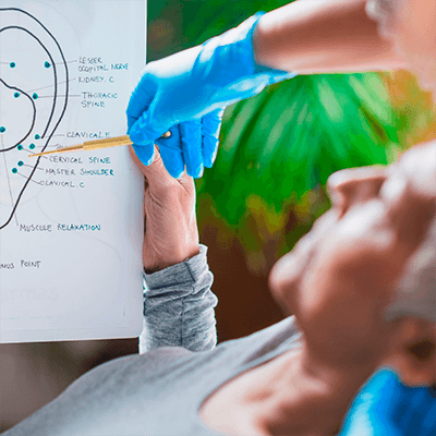 É uma terapia de microssistema que consiste no corpo humano ser representado na orelha, logo, cada ponto representa um órgão ou sistema.